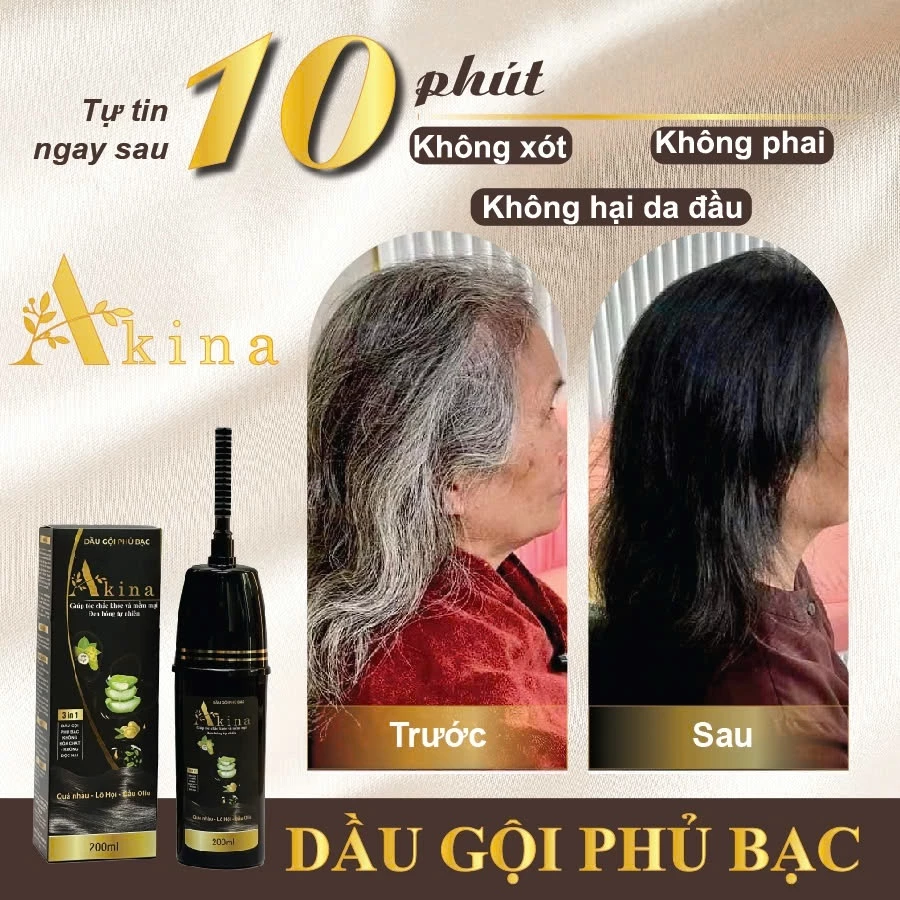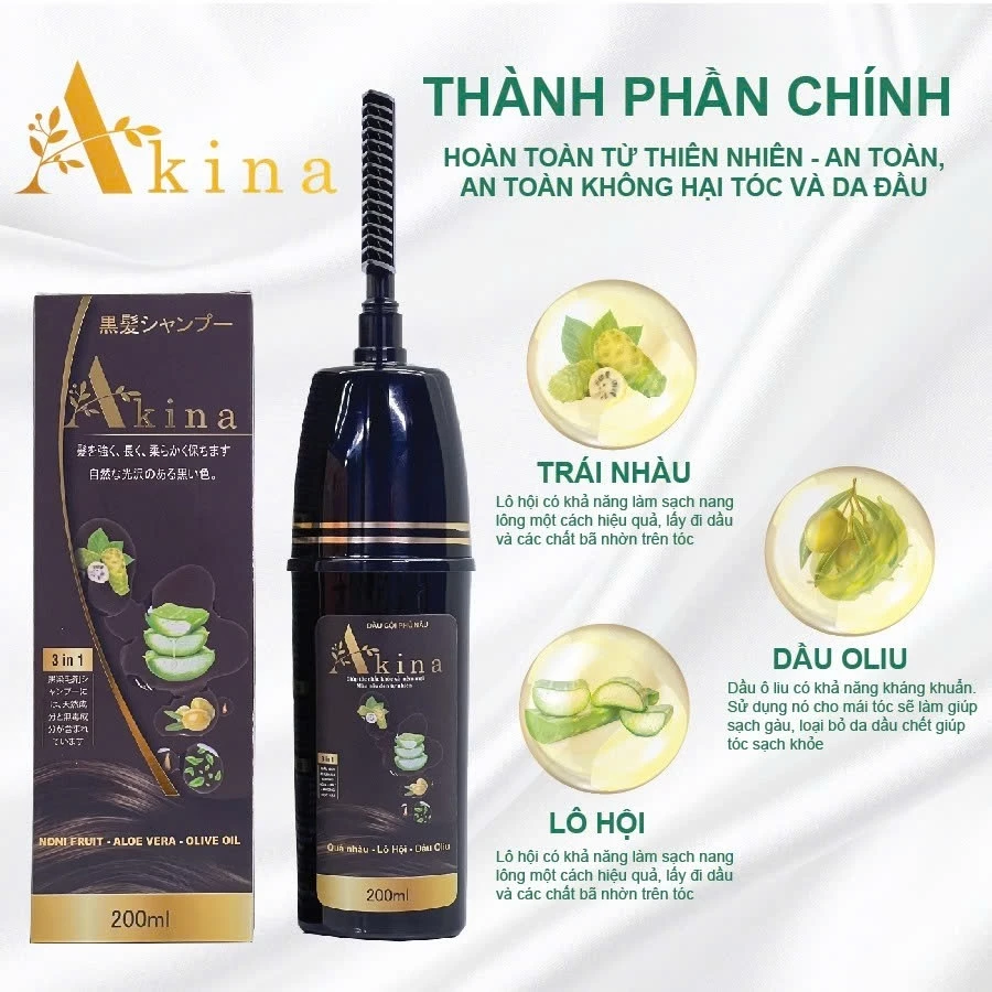 Dầu gội phụ bạc tóc Hàng việt nam công nghệ nhật bản (Dầu Gội Lược Chải Phủ Bạc )Akina 3 trong 1 của Nhật Bản 200ml giúp tóc đen tự tin sau 9 phút