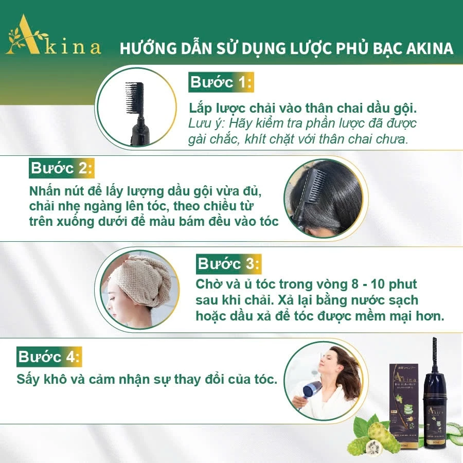 Dầu Gội Lược Chải Phủ Bạc Akina